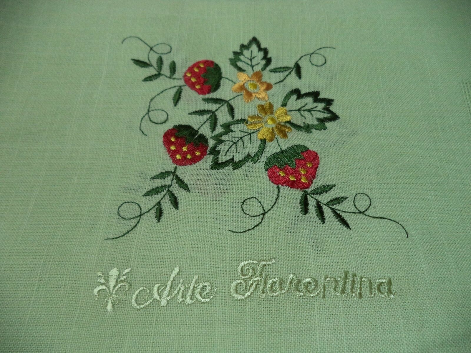 Vai al carrelloVINGI RICAMI. Tovaglia rettangolare da 24 posti - 140 x 450. VERA, FRUTTI. Italy