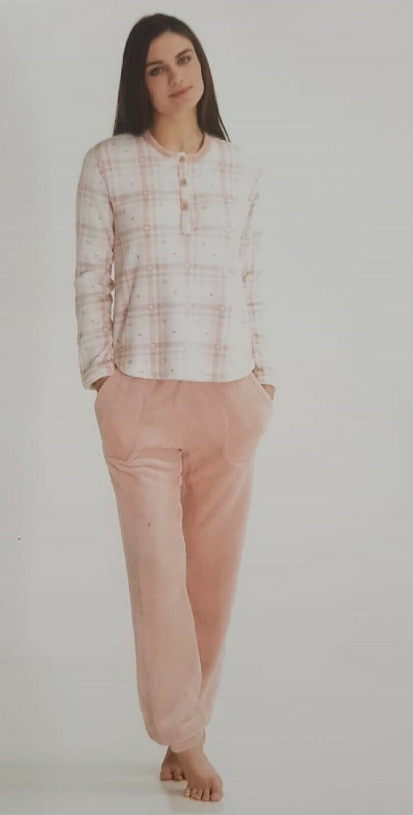 Vai al carrelloPigiama Donna invernale, Lungo Caldo Cotone. DOLCI CHICCHE, 1405. Grigio, Cipria