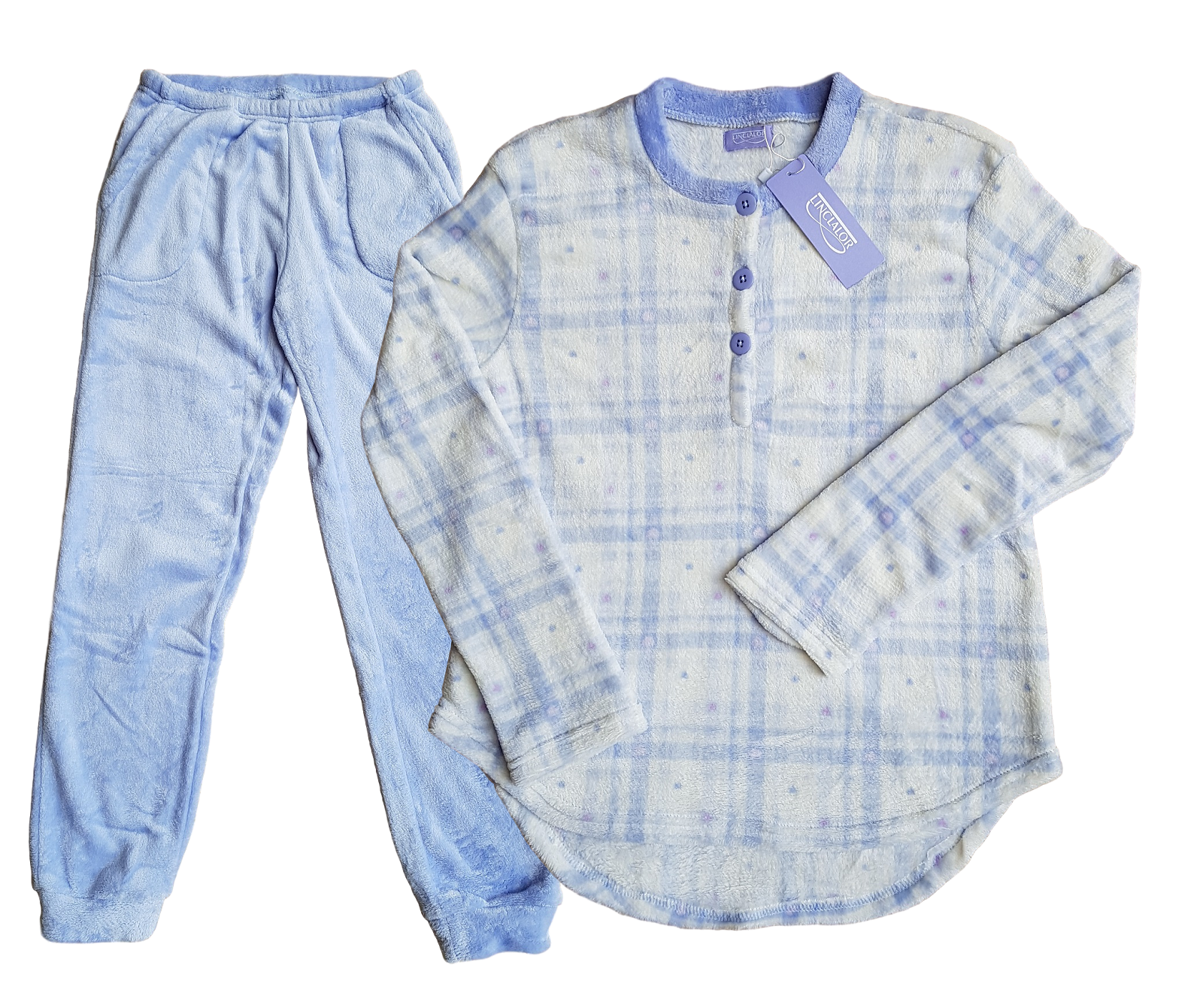 Vai al carrelloPigiama Caldo in MICROPILE Donna, Lungo bordato. LIABEL, LDP9684A1. Tortora, Blu