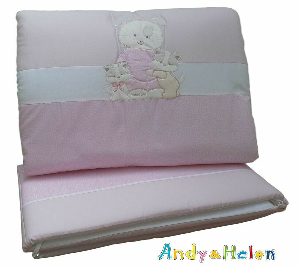 Marca: Andy & Helen Trapunta, piumotto invernale estraibile + Paracolpi + Federa. Articolo: 610EA Culla/Lettino. - Piumotto estraibile ricamato; cm. 140 x 110 - Paracolpi con laccetti; cm. 180 x 45 - 1 Federa; cm. 57 x 38 Composizione Tessuto esterno in 100% Cotone. Imbottitura in 100% Poliestere Ignifugo Made in ITALY