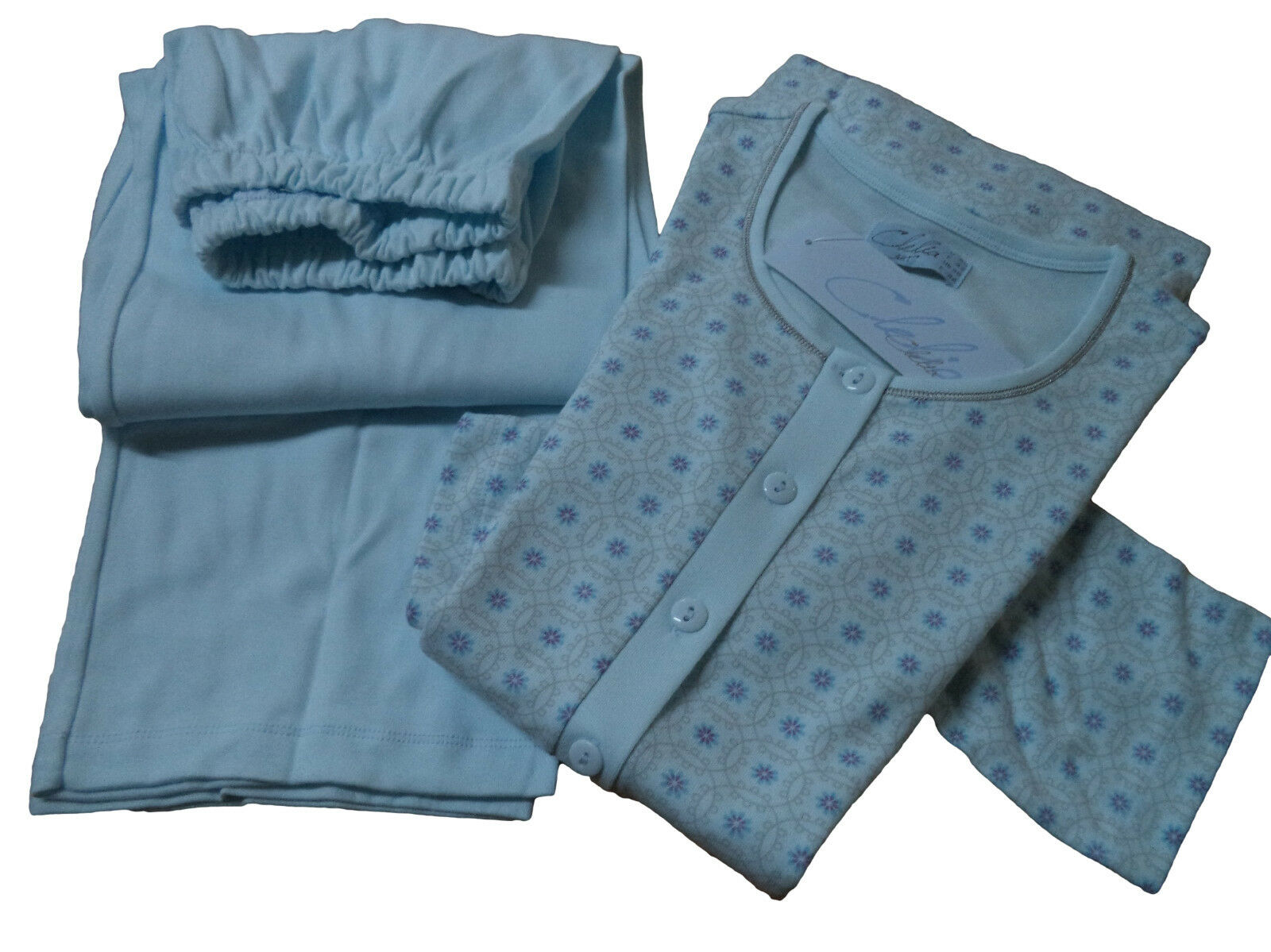RAGNO Pantalone Lungo e Manica lunga. DESCRIZIONE Marca: RAGNO Pigiama Donna Lungo PUNTO MILANO 5 bottoni in colore alternato. Elastico ai polsi e alle caviglie. Articolo: N10301 Fantasia: SMALTO Colore: 207 F Turchese e Grigio. Le taglie sono disponibili dalla "S" alla "XXL". Verrà spedito nel suo scatolo originale firmato "RAGNO - CUORE BATTICUORE". TI RINGRAZIAMO PER AVER VISITATO IL NOSTRO NEGOZIO !!!