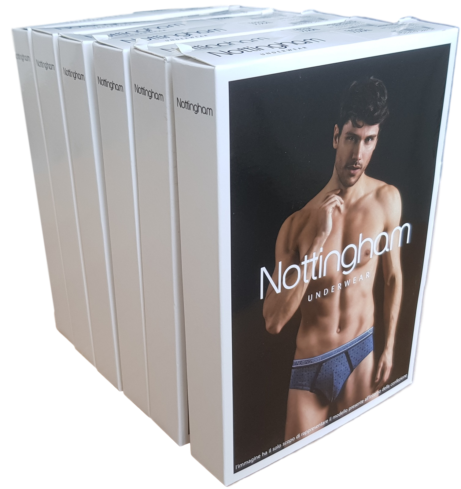 6 Slip da Uomo NOTTINGHAM con elastico esterno in Cotone. Marca: NOTTINGHAM Articolo: 14937 Tipo oggetto: Slip Genere: Uomo Tessuto: 94% Cotone - 6% Elastan Unità nella confezione: 6 Slip Colori nella confezione: 2 Blu + 2 Jeans + 2 Nero Confezione: Scatola