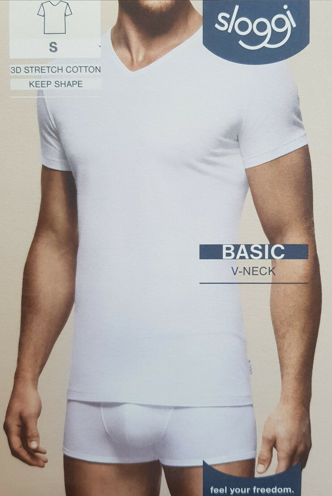 Maglietta intima da uomo a mezza manica scollo V. Tessuto in cotone elasticizzato Marca: SLOGGI Articolo: EXPLORER V-NECK Tipo oggetto: T-shirt Modello: Mezza manica scollo V Genere: Uomo Composizione tessuto : 60% Poliammide - 35% Cotone - 5% Elastan Periodo consigliato: Tutto l'anno Unità nella confezione: 1