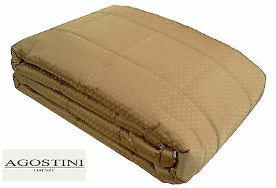 AGOSTINI Firenze Quilt - Copriletto trapuntato. Matrimoniale - 2 piazze. DESCRIZIONE DEL PRODOTTO Marca: AGOSTINI Firenze Articolo; AGO-Q01 Quilt - Trapuntino con tripla trapuntatura, disponibile nella versione; Matrimoniale - 2 piazze. CARATTERISTICHE; Matrimoniale; cm. 270 x 270 Tessuto sopra; 100% Poliestere. Tessuto sotto; 100% Cotone. Imbottitura in poliestere anallergico 100%. Peso imbottitura - 100 gr. mq. Colore disponibile; Spumante AGOSTINI FIRENZE ... Tradizione toscana dal 1936 La Casa Agostini ha le sue radici nella tradizione dell'alto artigianato toscano. Il continuo utilizzo di filati pregiati, tessuti nobili, ricami preziosi ha reso la Casa Agostini unica ed originale. Le collezioni sono ispirate oggi come ieri ai valori della tradizione e dell'innovazione tecnica e stilistica che hanno permesso di conquistare la fiducia dei clienti di tutto il mondo. MADE IN ITALY!! TI RINGRAZIAMO PER AVER VISITATO IL NOSTRO NEGOZIO !!!
