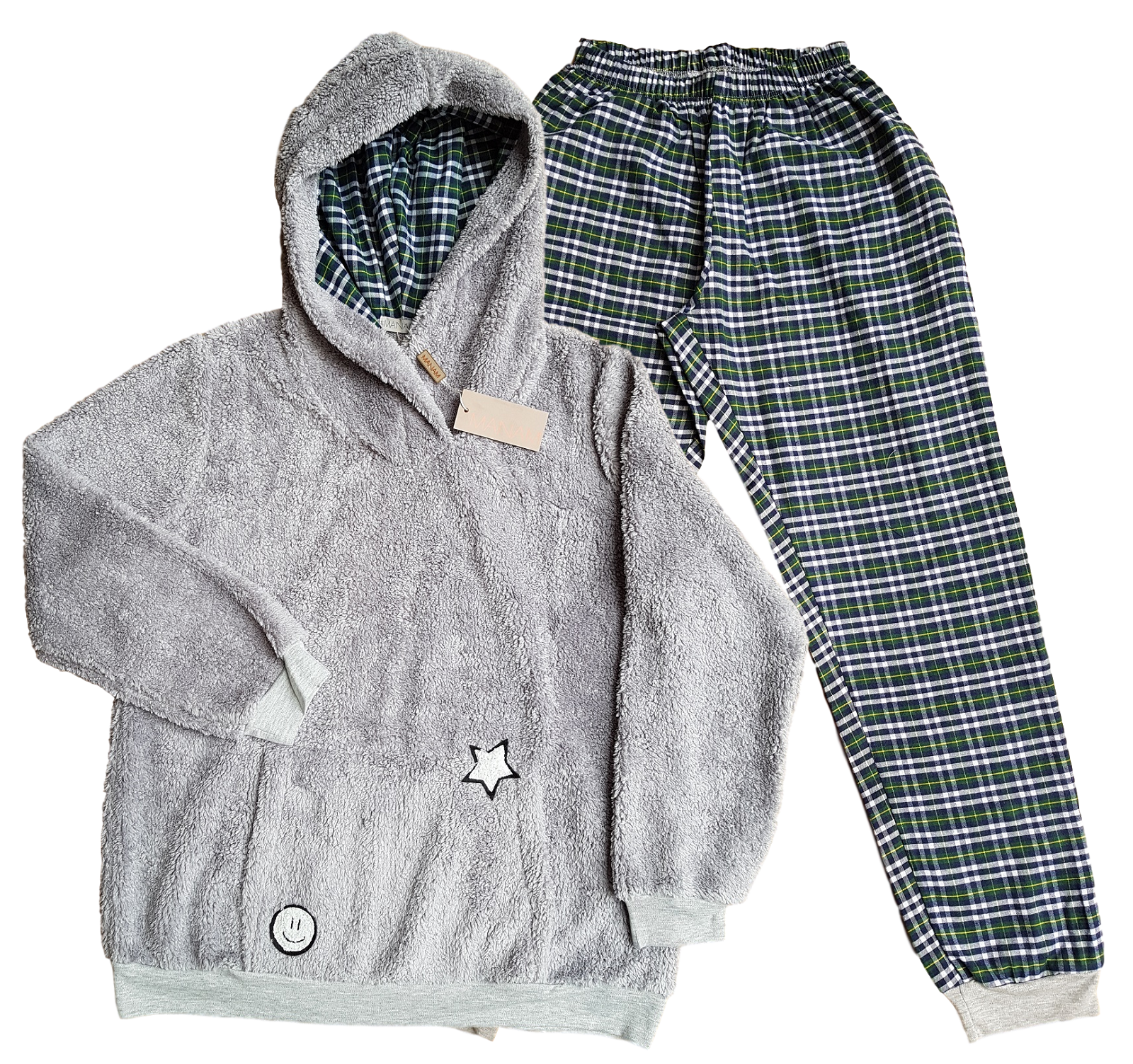 Pigiama Donna invernale, Felpa con cappuccio e 2 tasche laterali.