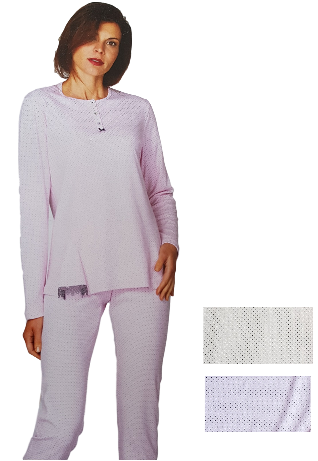 Pigiama invernale Donna in Caldo Cotone Lungo con elastici KICCHE YOUNG - 1619