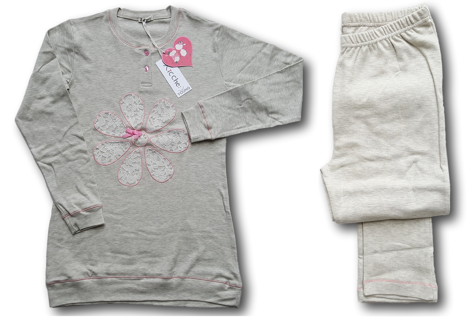 RAGNO Pantalone Lungo e Manica lunga. DESCRIZIONE Marca: RAGNO Pigiama Donna Lungo Caldo Cotone. Girocollo con fiocchetto. Elastico ai polsi e alle caviglie. Articolo: N10271 Fantasia: GERBERA Colore: 722 F Rosa e Grigio. Le taglie sono disponibili dalla "S" alla "XXL". Verrà spedito nel suo scatolo originale firmato "RAGNO - CUORE BATTICUORE". TI RINGRAZIAMO PER AVER VISITATO IL NOSTRO NEGOZIO !!!