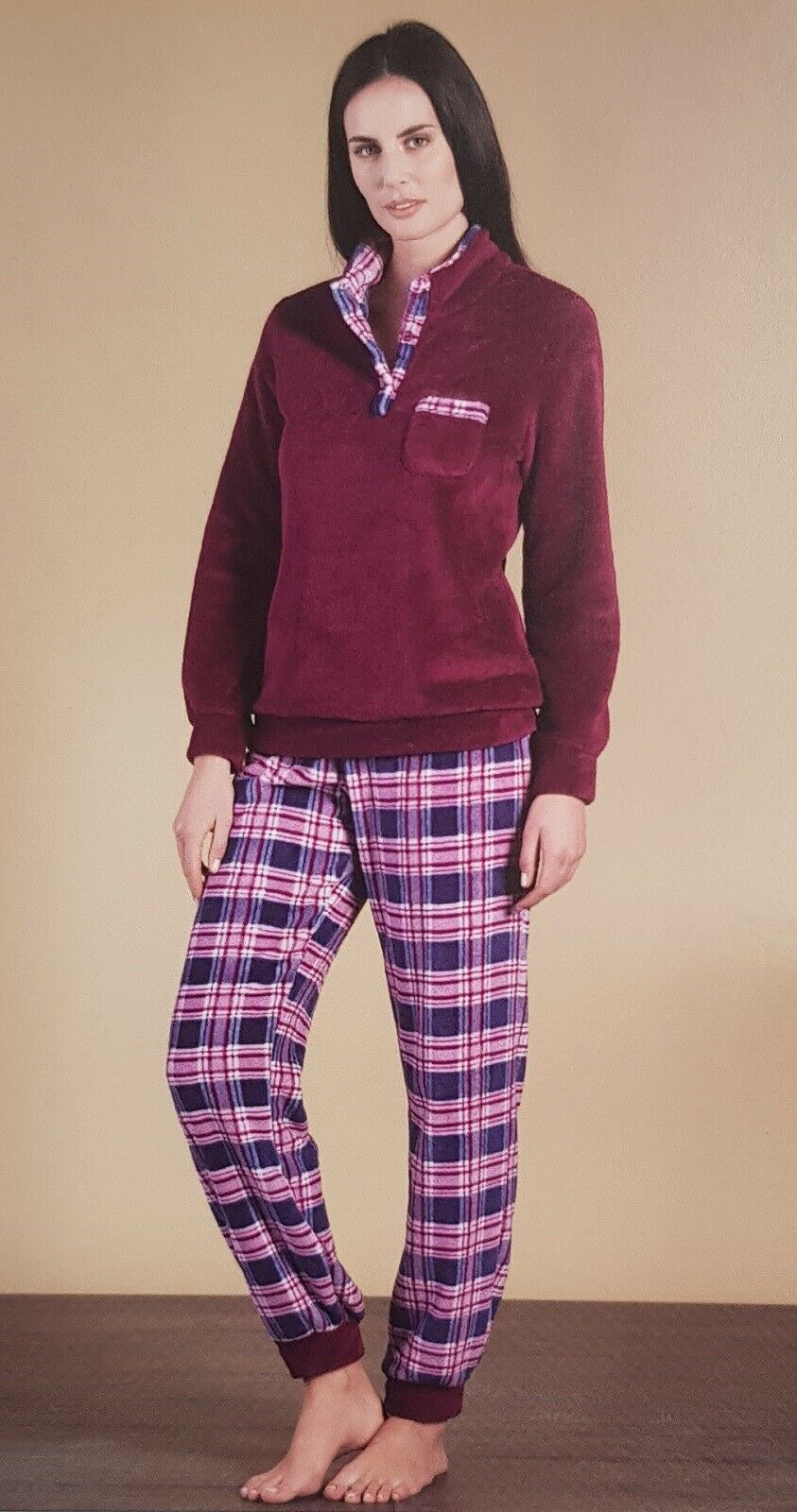 Pigiama Donna invernale in Pile LINCLALOR CORAL con polsini e pantalone con elastici.