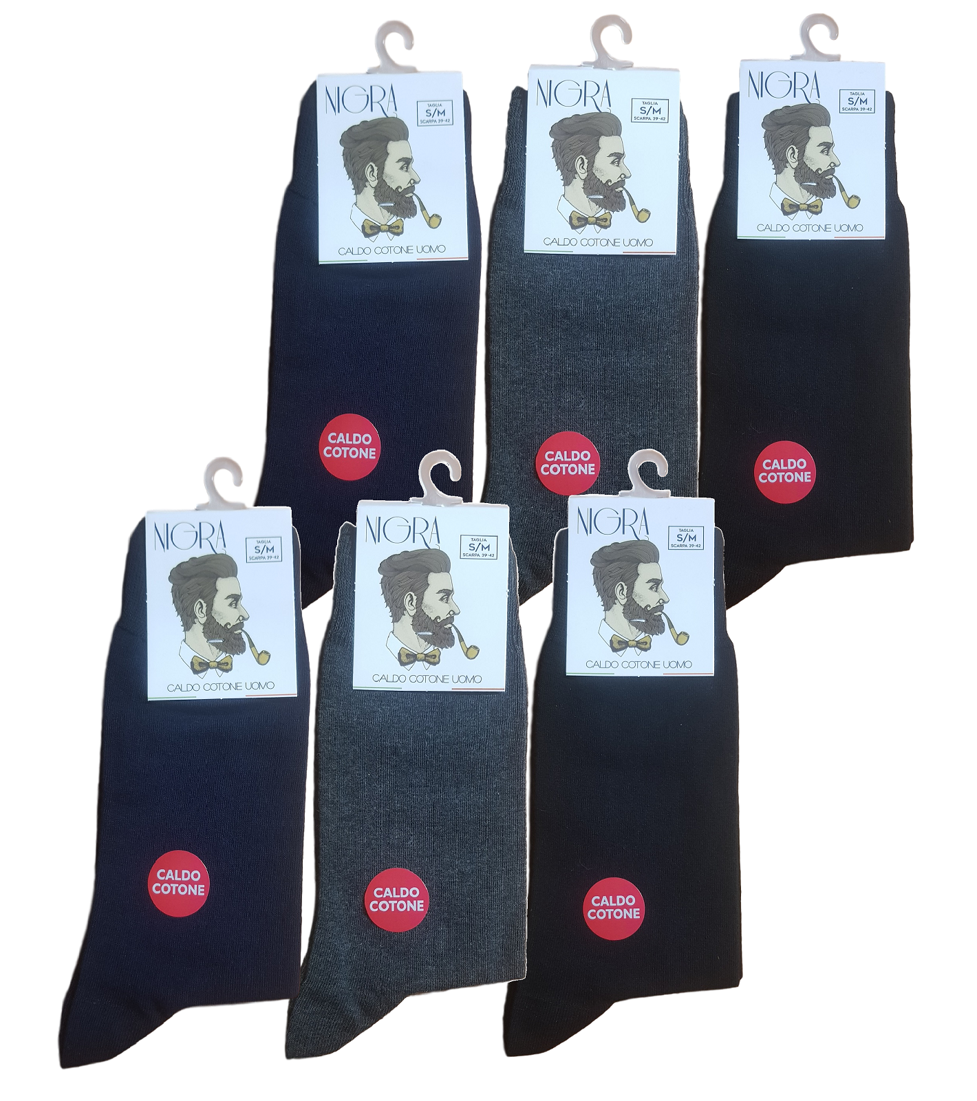 Il prezzo è inteso per 6 paia. DESCRIZIONE Marca: NIGRA Articolo: 201C Collezione: LINEA SANITARIA Tipo oggetto: Calza Corta Genere: Uomo Materiale: Caldo cotone; 95% Cotone soft - 5% Elastomero Numeri pezzi in confezione: 6 paia (2 Blu, 2 Grigio, 2 Nero) Periodo consigliato: Autunno - Inverno Confezione: Scatolo Calze realizzate con i migliori filati. Il polsino di questa calza è ottenuto senza fibra elastica, quindi è particolarmente indicato per le persone con disturbi alla circolazione venosa periferica. - Non ostacola la circolazione - Comfort della gamba - Cucitura Piatta - Piedi sensibili MADE IN ITALY
