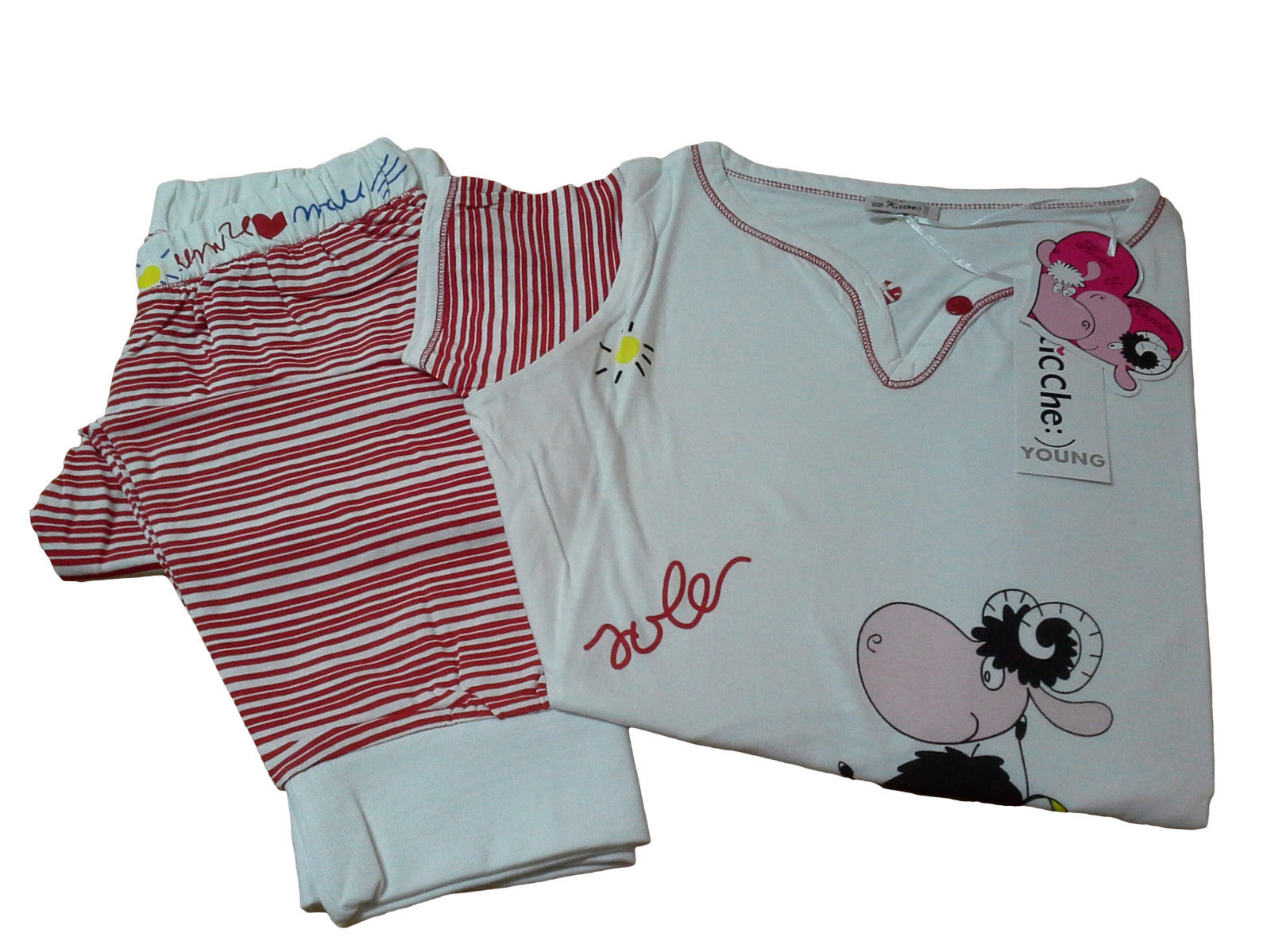 Vai al carrelloPigiama donna. KICCHE YOUNG, K 113 Mezza manica, Leggings pinocchietto. Cotone.