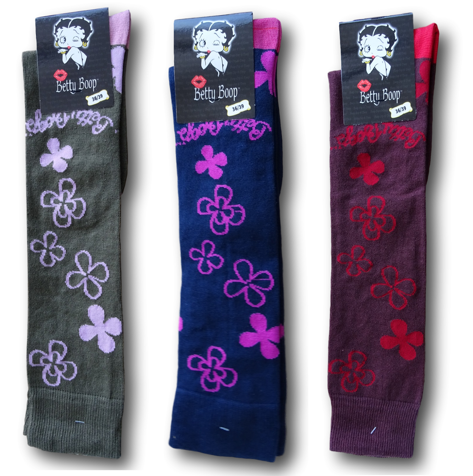 BETTY BOOP - BB002. 3 Paia o 6 Paia Calzini lunghi Donna, Calzettoni. Cotone.