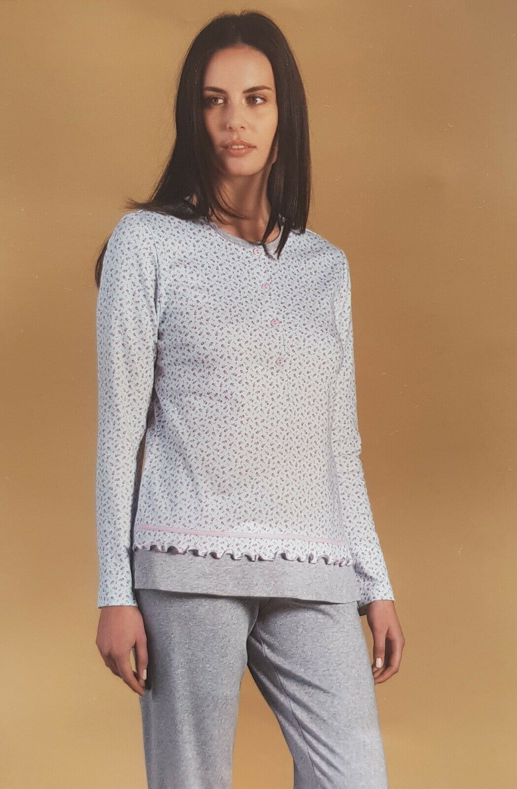 Vai al carrelloVENERE 1064/P Pigiama donna lungo, bordato primaverile serafino Puro Cotone 100%