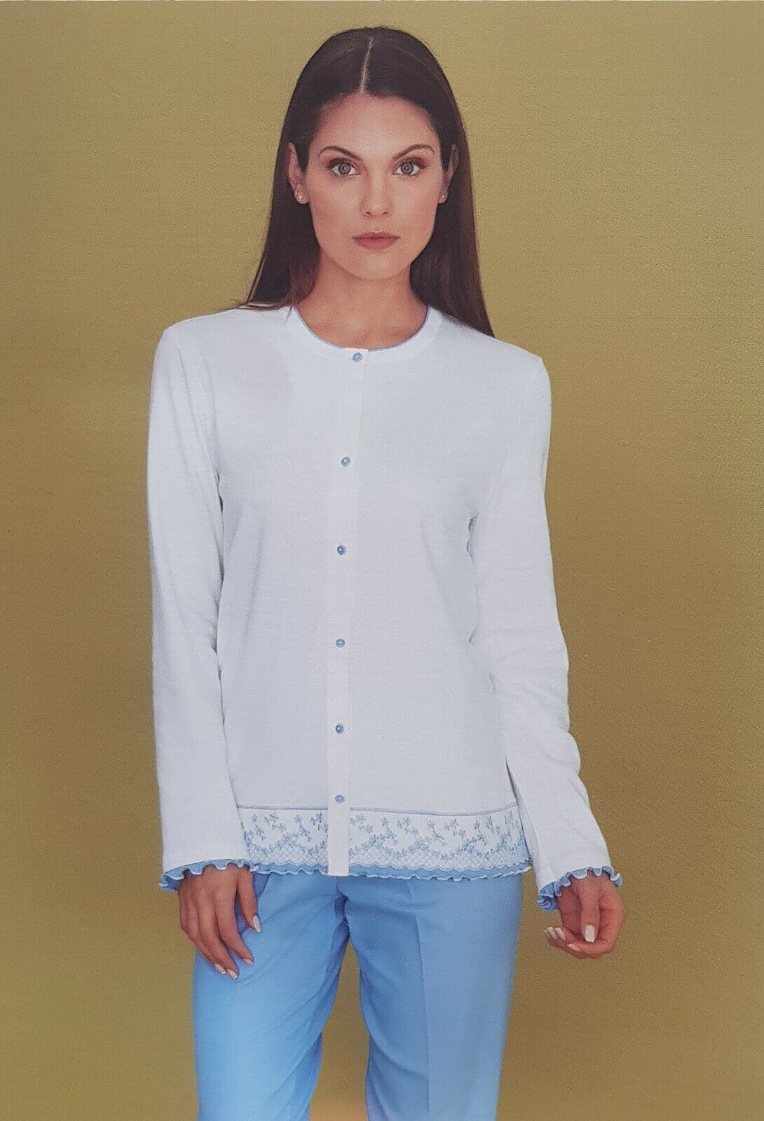 Vai al carrelloVENERE 1064/P Pigiama donna lungo, bordato primaverile serafino Puro Cotone 100%
