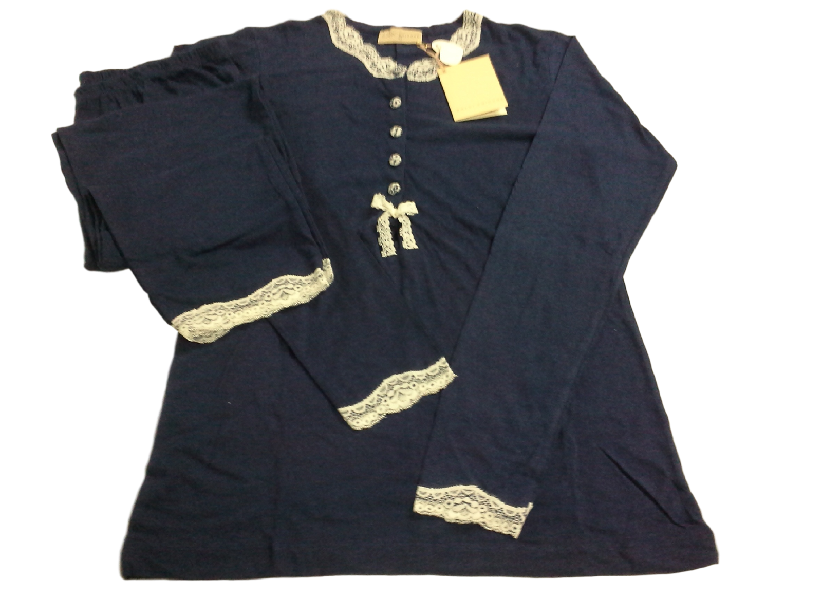 Vai al carrelloVENERE 1064/P Pigiama donna lungo, bordato primaverile serafino Puro Cotone 100%