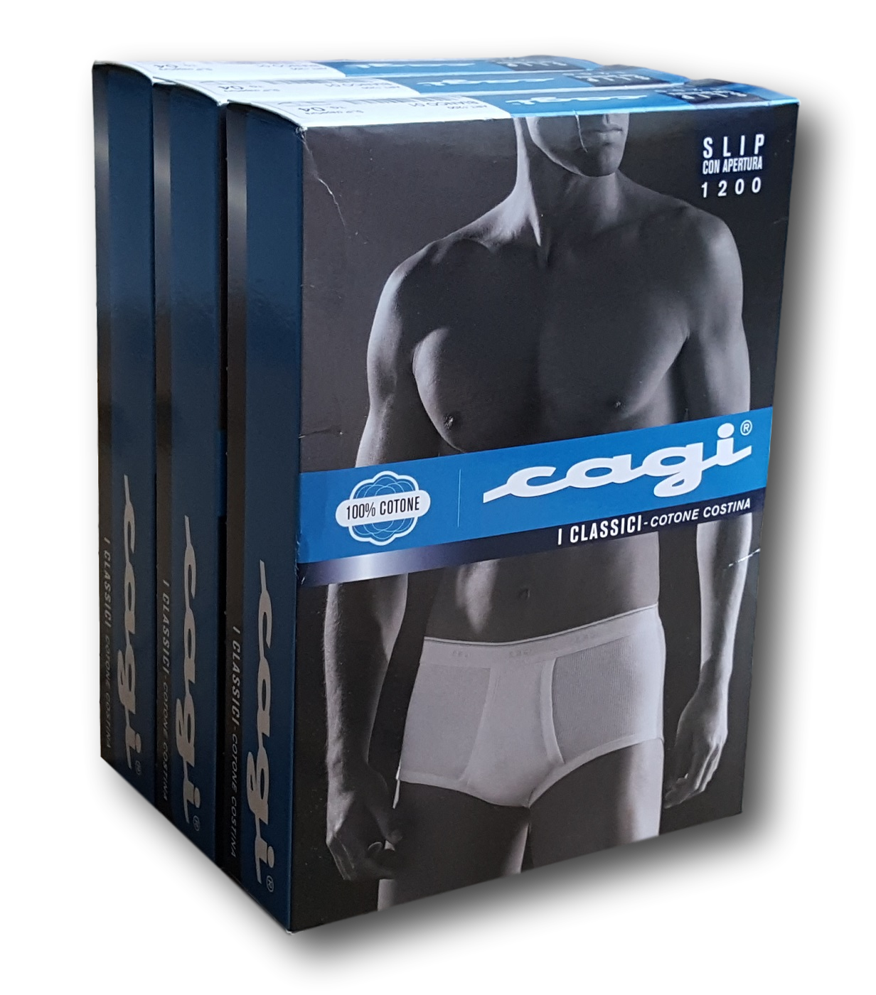 2 Slip Uomo elastico esterno in Cotone bielastico. Marca: L' altra COTONELLA Articolo: 2383 Colore: 0L100 Tipo oggetto: Slip Genere: Uomo Tessuto: 95% Cotone - 5% Elastan Unità nella confezione: 2 Slip Confezione: Scatola