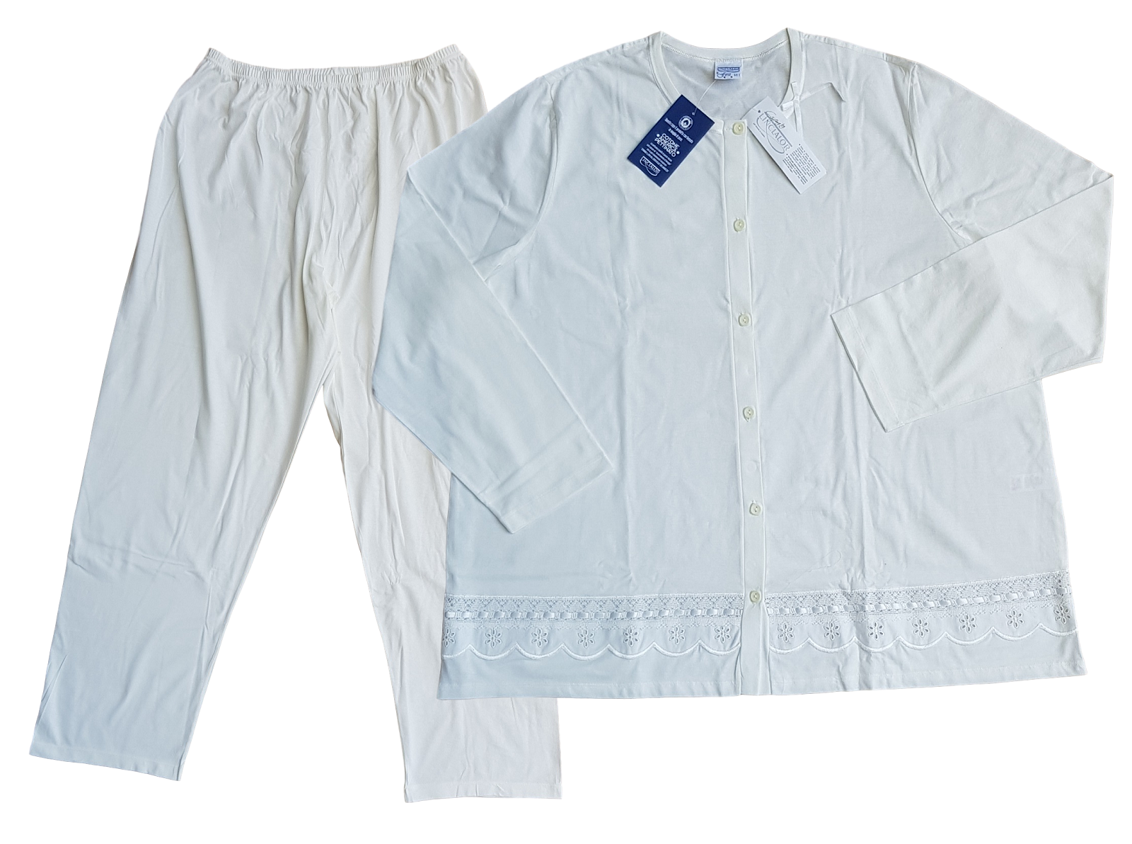Vai al carrelloVENERE 1064/P Pigiama donna lungo, bordato primaverile serafino Puro Cotone 100%