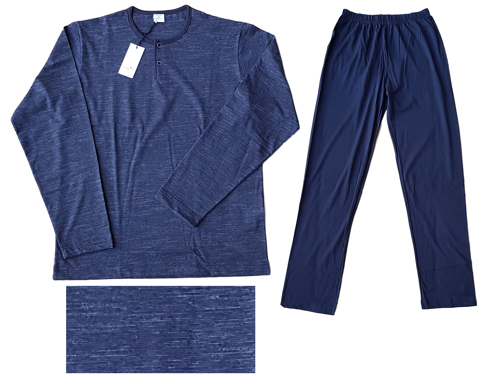 Pigiama lungo collo serafino manica lunga tinta unita pantaloni fantasia in jersey. Linea Forniture Italiane, stile contemporaneo. Marca: RAGNO SPORT Articolo: U103N1 Tipo oggetto: Pigiama completo Genere: Uomo Composizione: 100% cotone Periodo consigliato: Primavera Confezione: Scatola