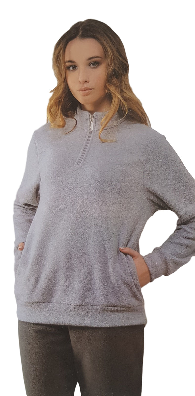 Pigiama Donna Invernale in morbido tessuto Pile con polsini alla maglia e al pantalone. Maglia con zip e tasche laterali.