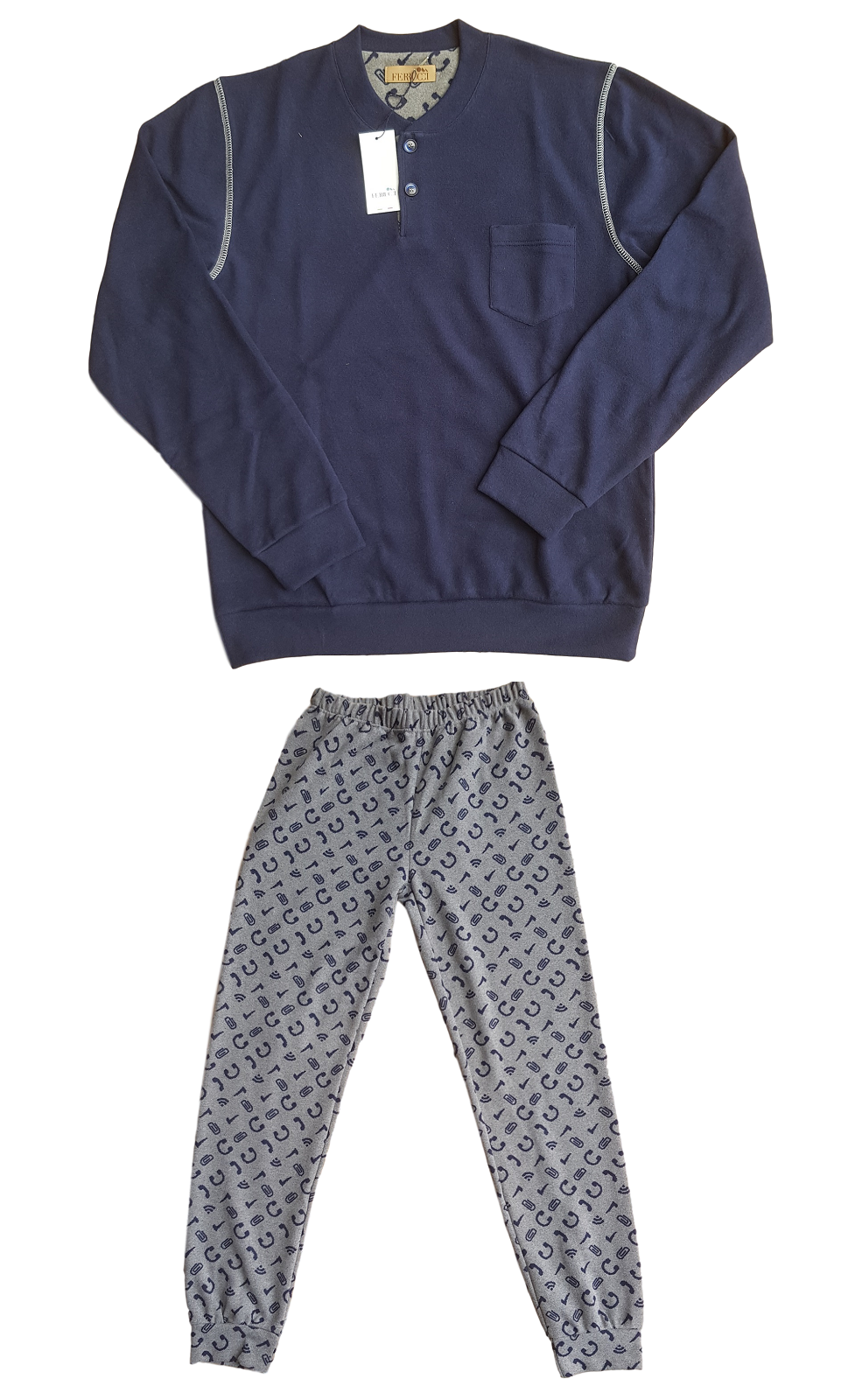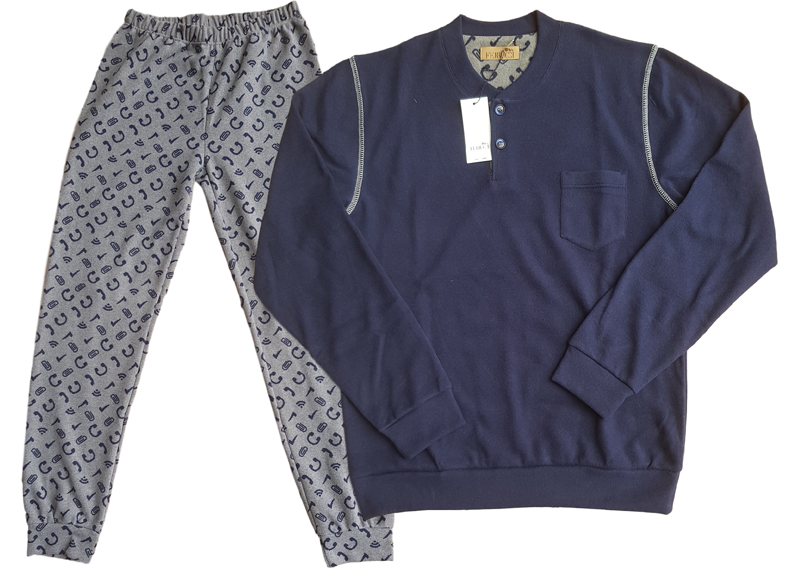 Pigiama Uomo invernale in Cotone Felpato, modello Derby, bordato con elastici alle maniche ed al pantalone.