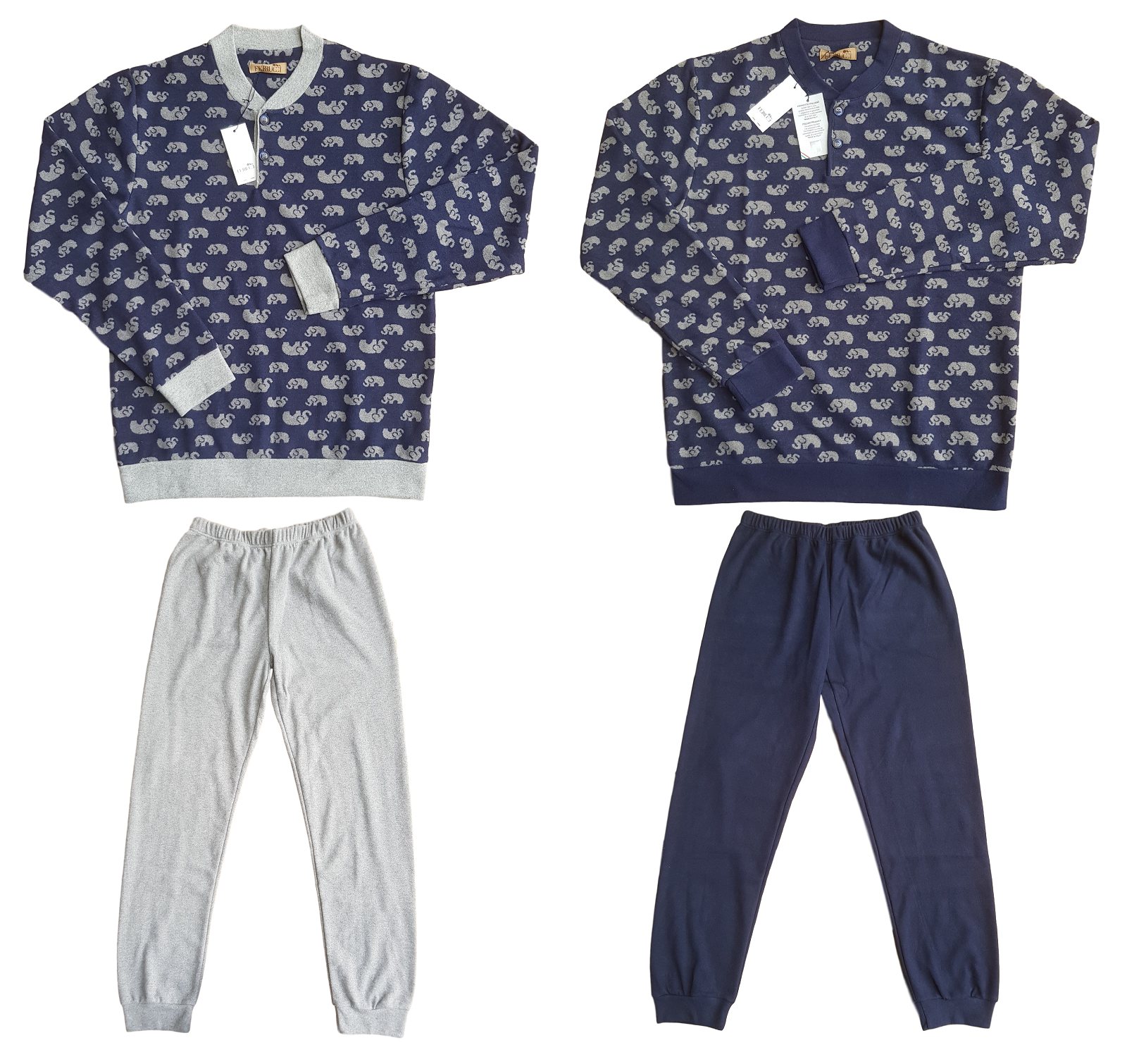 Pigiama Uomo invernale in Cotone Felpato, modello Derby, bordato con elastici alle maniche ed al pantalone.