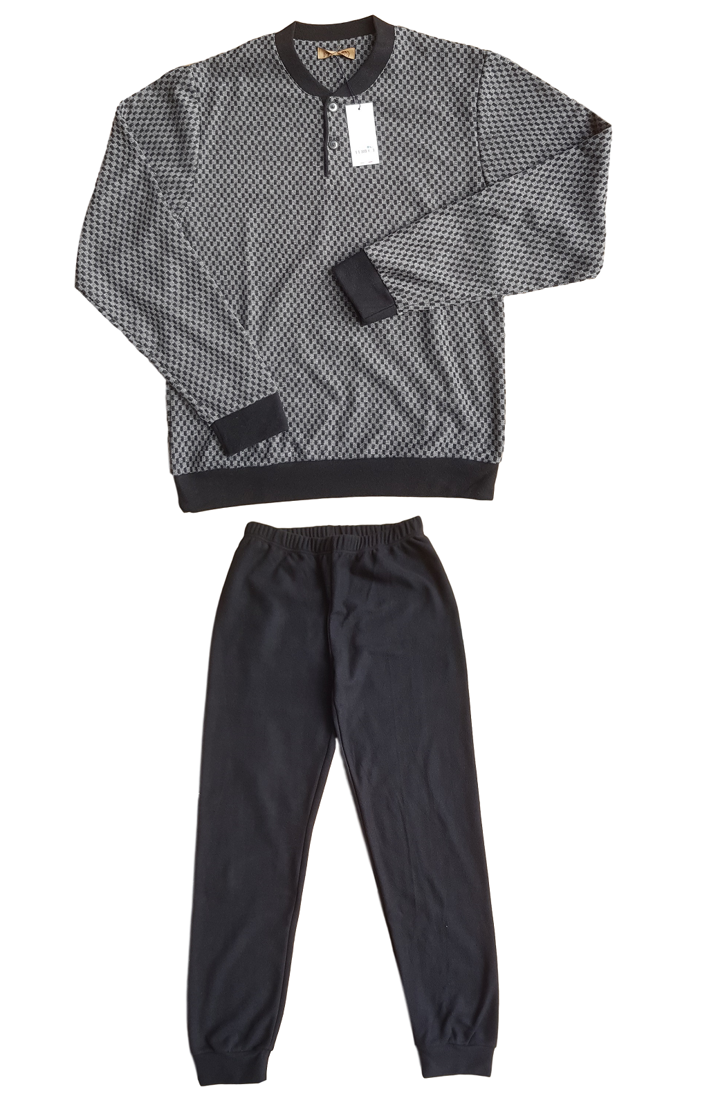Pigiama Uomo invernale in Cotone Felpato, modello Derby, bordato con elastici alle maniche ed al pantalone.