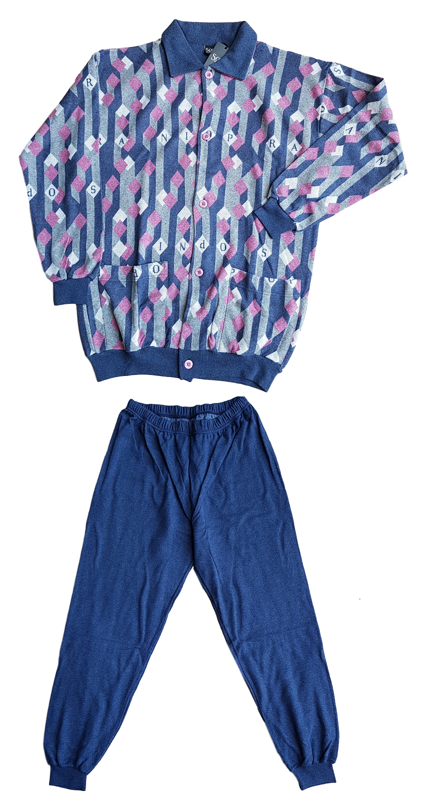 Pigiama Uomo invernale, Punto Milano, modello Aperto con colletto, Bordato.