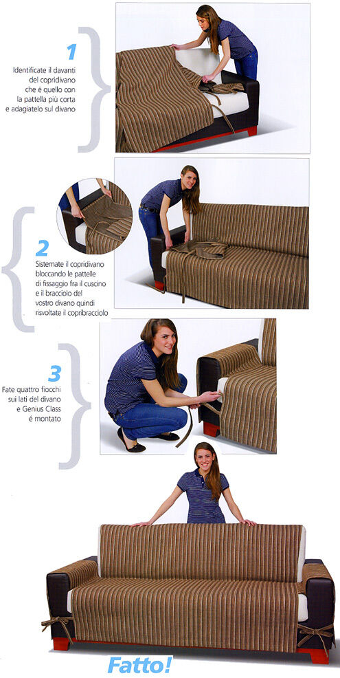 I copridivano Genius Class si adattano a quasi tutte le forme e le misure di divani lineari sia 2 posti, sia 3 posti.
