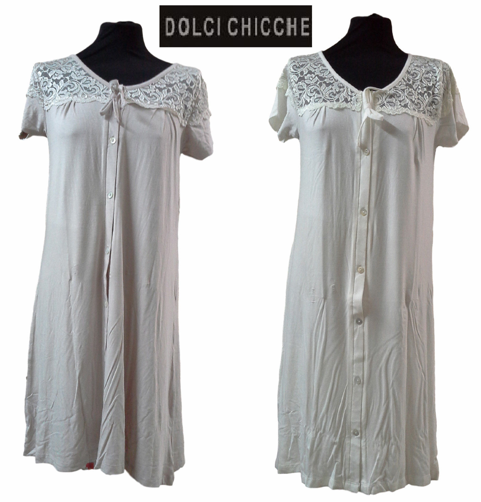 DESCRIZIONE DEL PRODOTTO Marca: DOLCI CHICCHE Articolo; 24413 Camicia da notte, con 4 bottoni, mezza manica 100% Cotone Ti verrà spedita nel suo scatolo originale "DOLCI CHICCHE".