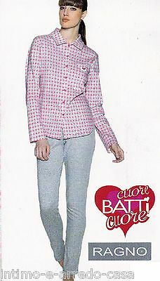 RAGNO Pantalone Lungo e Manica lunga. DESCRIZIONE Marca: RAGNO Pigiama Donna Lungo PUNTO MILANO 5 bottoni in colore alternato. Elastico ai polsi e alle caviglie. Articolo: N10301 Fantasia: SMALTO Colore: 207 F Turchese e Grigio. Le taglie sono disponibili dalla "S" alla "XXL". Verrà spedito nel suo scatolo originale firmato "RAGNO - CUORE BATTICUORE". TI RINGRAZIAMO PER AVER VISITATO IL NOSTRO NEGOZIO !!!