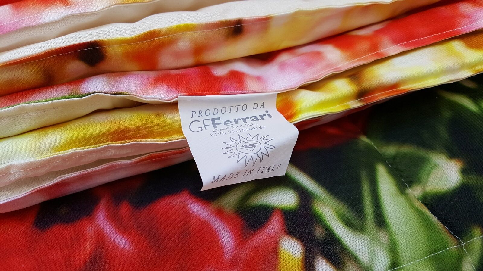 GF. FERRARI QUILT - TRAPUNTINO - DESCRIZIONE DEL PRODOTTO Marca: GF. FERRARI Quilt - trapuntino estivo disponibile nella versione matrimoniale. Tessuto metallizzato ricamato. Confezionato a mano. CARATTERISTICHE; Matrimoniale; cm. 260x260 Fodera in rasatello Imbottitura in poliestere anallergico 100%. Peso imbottitura 100gr. mq. Colore disponibile - Multicolore