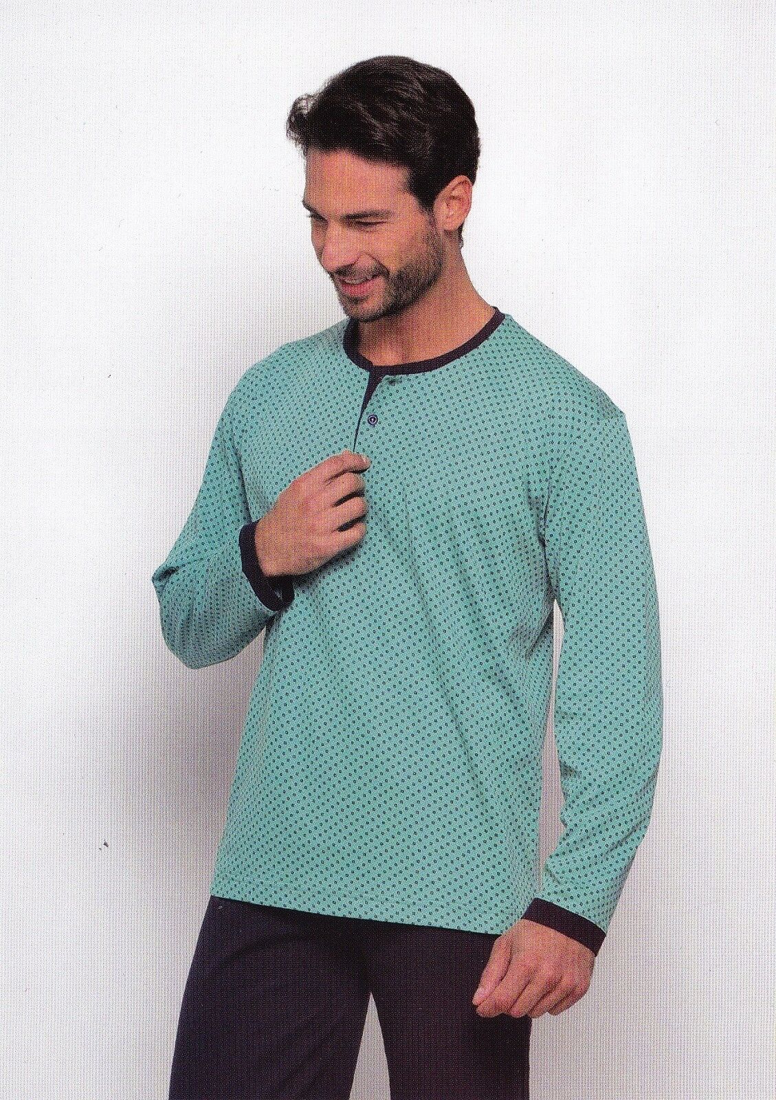 Vai al carrelloPigiama Uomo, Maglietta a 3 Bottoni, Lungo in 100% Puro Cotone. EL CHARRO - 319.