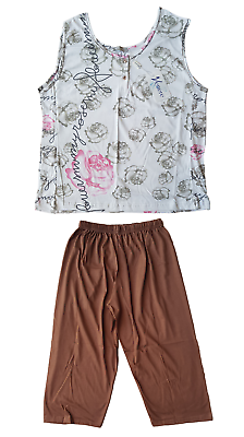 OGHAM. Pigiama da donna estivo con maglietta a spalla larga con bottoni sul di dietro e pantalone a pinocchietto in cotone 100%. DESCRIZIONE Marca: OGHAM Articolo: 8504 Tipo oggetto: Pigiama Modello: Corto Tessuto: 100% Cotone Periodo consigliato: Estate Confezione: Scatola logata .