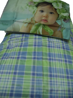 Fondo scozzese - Federa Doubleface. Verde/celeste.