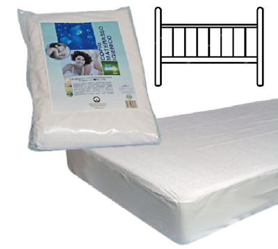 COPRIMATERASSO IMPERMEABILE SANITARIO con comodo elastico Con fasce in Cotone e poly, impermeabile, igienico, atossico e anallergico. PARIGI Tessuto: 70% Cotone - 30% Poliestere Misure disponibili: Singolo, 1 piazza: 85 x 195 cm. 1 Piazza e mezza: 125 x 195 cm.